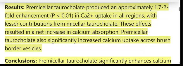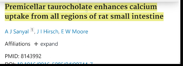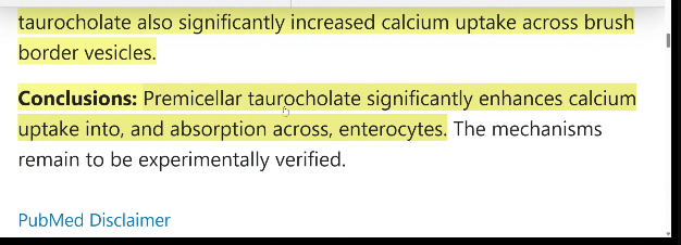 Premicellar taurocholate enhances calcium uptake from all regions of rat small intestine – PubMed: https://pubmed.ncbi.nlm.nih.gov/8143992/