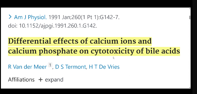 Differential effects of calcium ions and calcium phosphate on cytotoxicity of bile acids – PubMed: https://pubmed.ncbi.nlm.nih.gov/1987802/