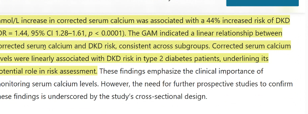 Association of serum calcium levels with diabetic kidney disease in normocalcemic type 2 diabetes patients: a cross-sectional study | Scientific Reports: https://www.nature.com/articles/s41598-024-72747-8