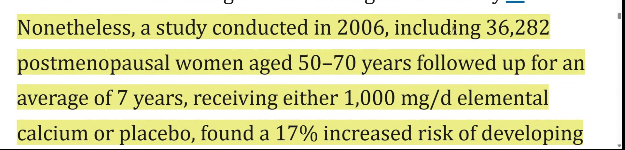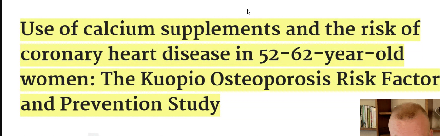 Use of calcium supplements and the risk of coronary heart disease in 52-62-year-old women: The Kuopio Osteoporosis Risk Factor and Prevention Study – PubMed: https://pubmed.ncbi.nlm.nih.gov/19394167/
