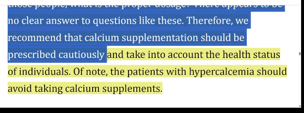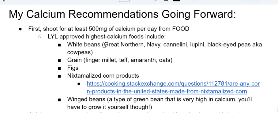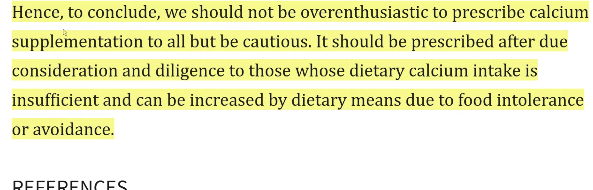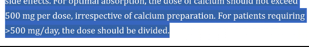 - Calcium supplementation–if one chooses to do it–should not be done at higher than 500mg total per day