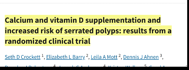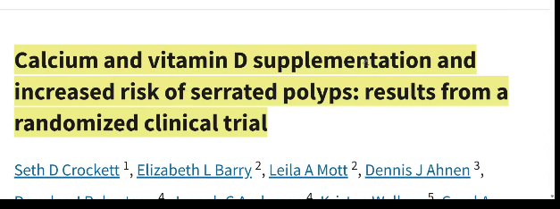 Calcium and vitamin D supplementation and increased risk of serrated polyps: results from a randomized clinical trial – PMC: https://pmc.ncbi.nlm.nih.gov/articles/PMC6286251/