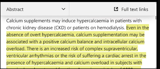 Cardiovascular complications of calcium supplementation in chronic kidney disease: are there arrhythmic risks? – PubMed: https://pubmed.ncbi.nlm.nih.gov/24999031/