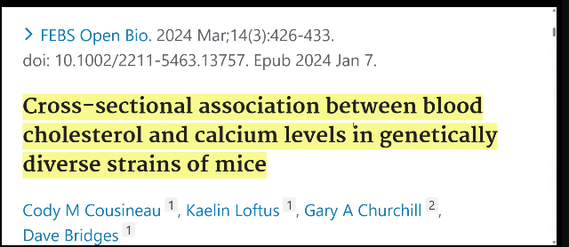 Cross-sectional association between blood cholesterol and calcium levels in genetically diverse strains of mice – PubMed: https://pubmed.ncbi.nlm.nih.gov/38129969/