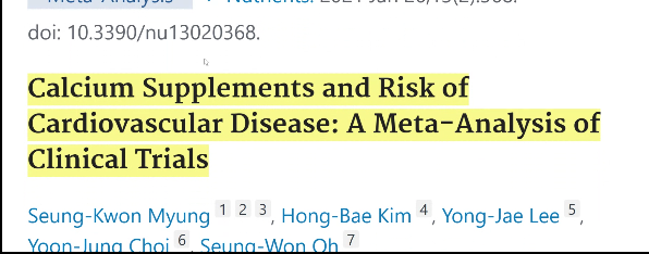 Calcium Supplementation, Risk of Cardiovascular Diseases, and Mortality: A Real-World Study of the Korean National Health Insurance Service Data – PubMed: https://pubmed.ncbi.nlm.nih.gov/35745268/