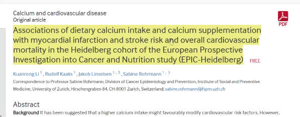 Associations of dietary calcium intake and calcium supplementation with myocardial infarction and stroke risk and overall cardiovascular mortality in the Heidelberg cohort of the European Prospective Investigation into Cancer and Nutrition study (EPIC-He… | Heart: https://heart.bmj.com/content/98/12/920