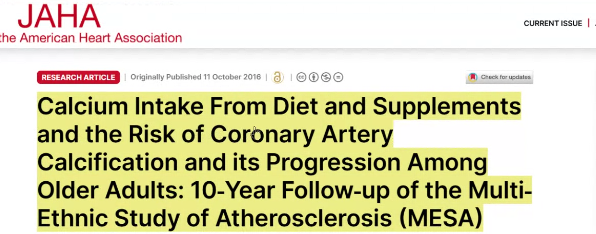 Calcium Intake From Diet and Supplements and the Risk of Coronary Artery Calcification and its Progression Among Older Adults: 10‐Year Follow‐up of the Multi‐Ethnic Study of Atherosclerosis (MESA) | Journal of the American Heart Association: https://www.ahajournals.org/doi/full/10.1161/JAHA.116.003815
