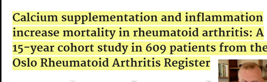 Calcium supplementation and inflammation increase mortality in rheumatoid arthritis: A 15-year cohort study in 609 patients from the Oslo Rheumatoid Arthritis Register – PubMed: https://pubmed.ncbi.nlm.nih.gov/27522465/