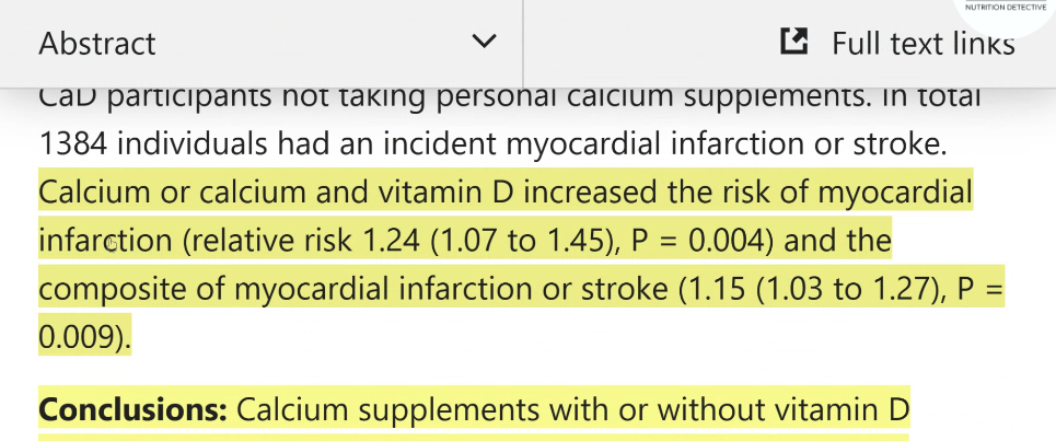 Effect of calcium supplements on risk of myocardial infarction and cardiovascular events: meta-analysis – PubMed: https://pubmed.ncbi.nlm.nih.gov/20671013/