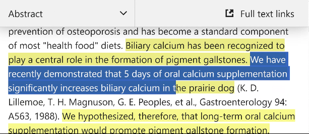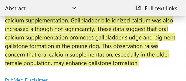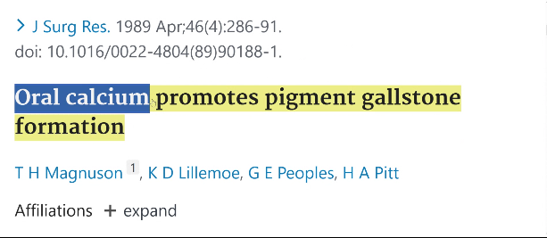 Oral calcium promotes pigment gallstone formation – PubMed: https://pubmed.ncbi.nlm.nih.gov/2704225/