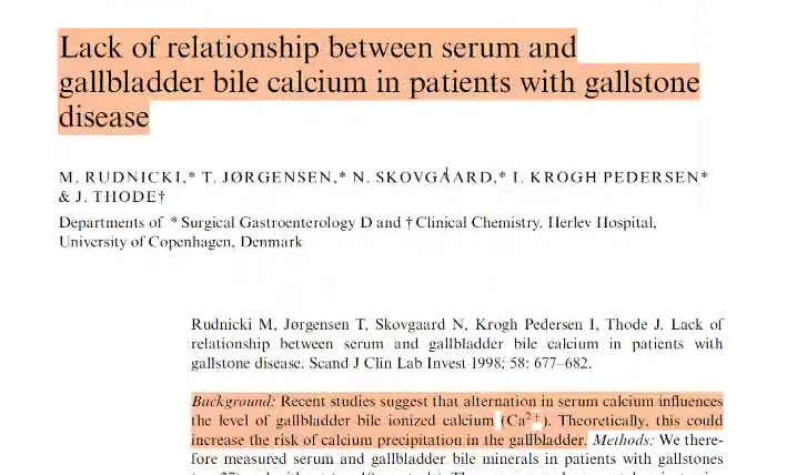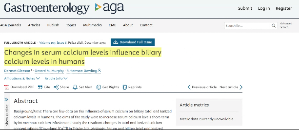 Changes in serum calcium levels influence biliary calcium levels in humans – Gastroenterology: https://www.gastrojournal.org/article/0016-5085(94)90825-7/fulltext