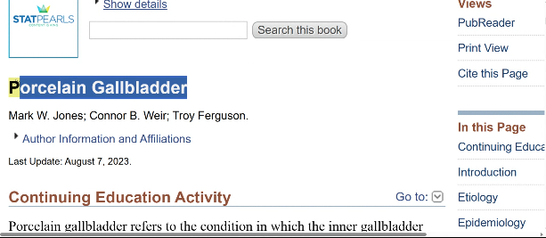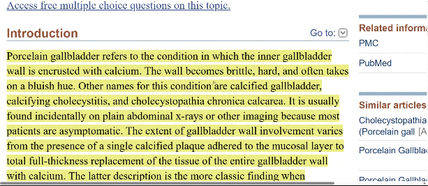 Porcelain Gallbladder – StatPearls – NCBI Bookshelf: https://www.ncbi.nlm.nih.gov/books/NBK518979/