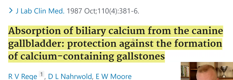 Absorption of biliary calcium from the canine gallbladder: protection against the formation of calcium-containing gallstones – PubMed: https://pubmed.ncbi.nlm.nih.gov/3655517/