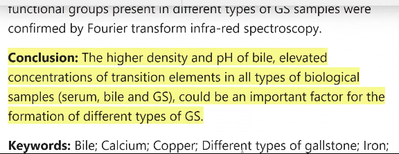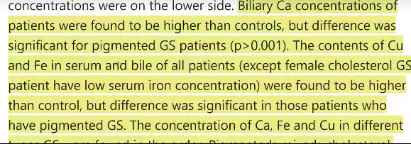 Variation of calcium, copper and iron levels in serum, bile and stone samples of patients having different types of gallstone: A comparative study – PubMed: https://pubmed.ncbi.nlm.nih.gov/28625681/