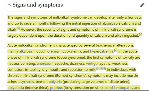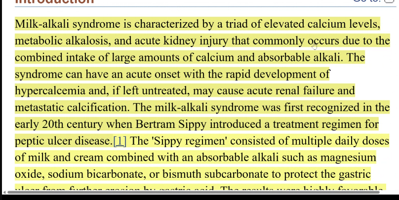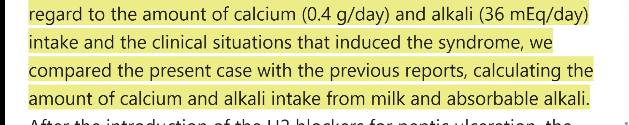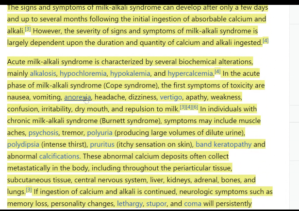 Milk-alkali syndrome – Wikipedia: https://en.m.wikipedia.org/wiki/Milk-alkali_syndrome