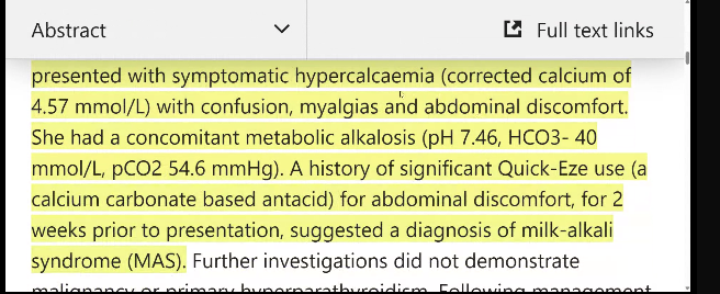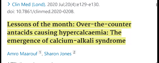 Lessons of the month: Over-the-counter antacids causing hypercalcaemia: The emergence of calcium-alkali syndrome – PubMed: https://pubmed.ncbi.nlm.nih.gov/32675162/