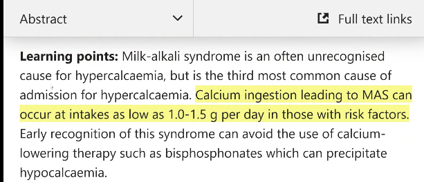 Calcium-Alkali Syndrome in the Modern Era: https://www.mdpi.com/2072-6643/5/12/4880