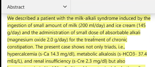 Milk-alkali syndrome: a ‘quick ease’ or a ‘long-lasting problem’ – PubMed: https://pubmed.ncbi.nlm.nih.gov/32408269/