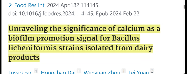 Unraveling the significance of calcium as a biofilm promotion signal for Bacillus licheniformis strains isolated from dairy products – PubMed: https://pubmed.ncbi.nlm.nih.gov/38519175/