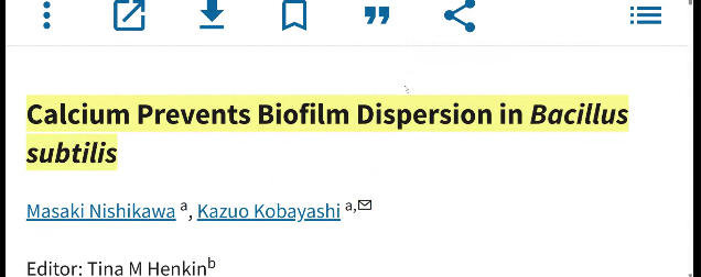 Calcium Prevents Biofilm Dispersion in Bacillus subtilis – PMC: https://pmc.ncbi.nlm.nih.gov/articles/PMC8223931/