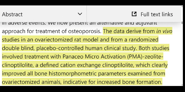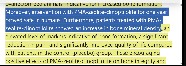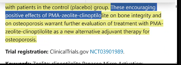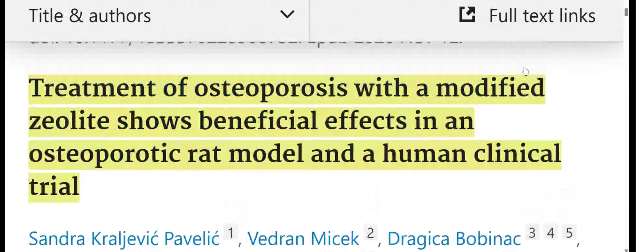 Treatment of osteoporosis with a modified zeolite shows beneficial effects in an osteoporotic rat model and a human clinical trial – PubMed: https://pubmed.ncbi.nlm.nih.gov/33183068/
