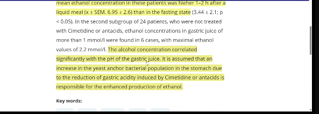 - Increased ethanol/alcohol production in the stomach from antacids lowering the pH: