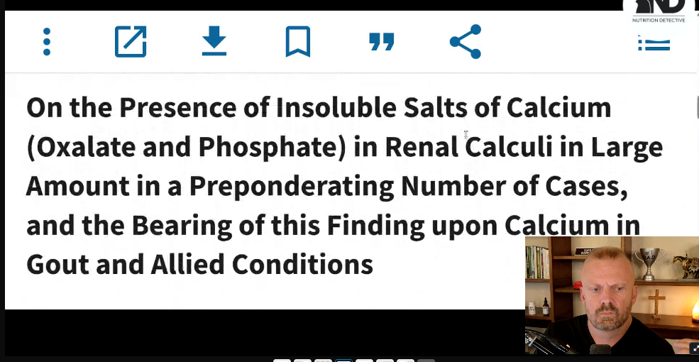 - On the Presence of Insoluble Salts of Calcium (Oxalate and Phosphate) in Renal Calculi in Large Amount in a Preponderating Number of Cases, and the Bearing of this Finding upon Calcium in Gout and Allied Conditions – PMC: https://pmc.ncbi.nlm.nih.gov/articles/PMC1276351