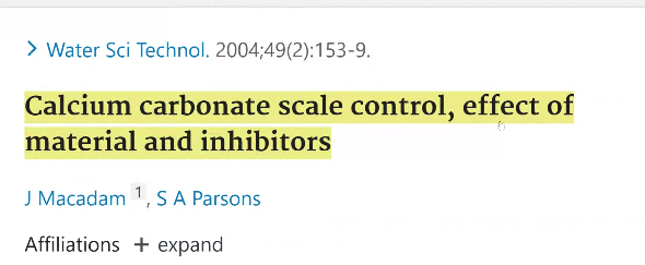 Calcium carbonate scale control, effect of material and inhibitors – PubMed: https://pubmed.ncbi.nlm.nih.gov/14982176/