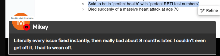 - Said to be in “perfect health” with “perfect RBTI test numbers”